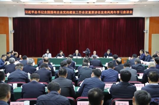 10月10日,在习近平总书记全国国有企业党的建设工作会议重要讲话发表两周年之际,国务院国资委党委召开学习座谈会,深入学习贯彻习近平新时代中国特色社会主义思想和党的十九大精神,组织国资委和中央企业党员干部重温习近平总书记在全国国企党建会上的重要讲话,认真总结两年来贯彻落实的进展成效,不断开创中央企业改革发展和党的建设新局面。国资委党委书记郝鹏出席学习座谈会并讲话。中央纪委国家监委驻国资委纪检监察组组长、国资委党委委员陈超英主持座谈会。国资委党委委员出席会议。中央纪委国家监委、中央组织部、中央党的建设工作领导小组秘书组有关部门负责同志应邀参加会议。