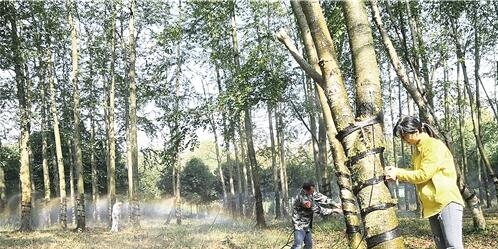 11月22日,江西省分宜县中国林科院亚热带林业实验中心树木园内,技术人员在查看霍山米斛的生长情况。 袁建兵摄