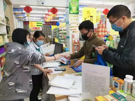 从疫情爆发至今,国大药房一直奋战在一线,努力确保防疫物资充足,让老百姓能够及时买到防疫物资。有些门店员工人手紧张,不得不经常加班至深夜十一二点;有些门店就处在新型冠状病毒肺炎定点医院的边上,可店员们依然坚守岗位,热情不减,耐心的为每一位进店顾客讲解;为了保证顾客的健康,门店每两小时拖地消毒一次,营业时段前后门通风,虽然屋内很冷,但他们没有叫苦叫累,只为守护百姓的健康。