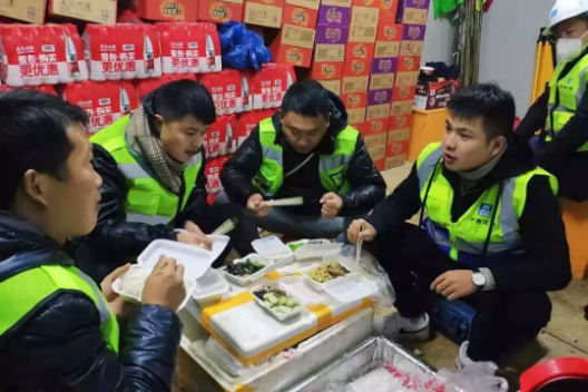 图3:中国建筑青年突击队带头攻坚克难及工地上的年夜饭