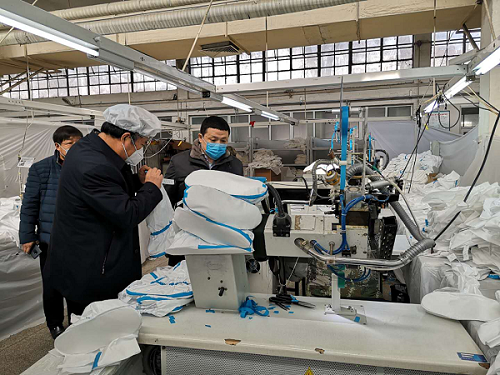 在协调指导生产方面,对重点生产企业派驻协调监督员,第一时间协调解决企业生产过程中的困难和问题:协调河北、江苏、山西等省有关部门快速检测,紧急为转产企业颁发疫情防控期间应急使用的相关证件。