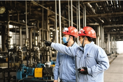 2月20日,在中国石化集团重庆川维化工有限公司,工作人员在生产线上巡检。记者 唐奕 摄