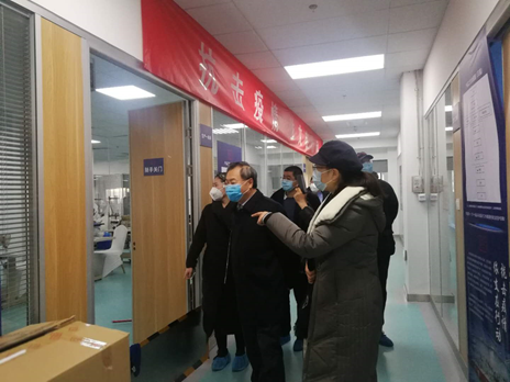 刘敬桢董事长来到医用物资生产车间,了解生产一线的原料供应、质量管控等方面情况,并详细询问压条机、工人复产复工等产业链衔接情况。