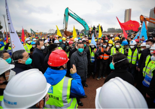 2月1日,中建集团党组书记、董事长周乃翔赶赴武汉,与郑学选一起调研火神山医院工地。周乃翔提出,要不辱使命、不负众望、不惜代价,以高标准、高质量圆满建成火神山医院的实际行动,为打赢疫情防控阻击战贡献中建力量。