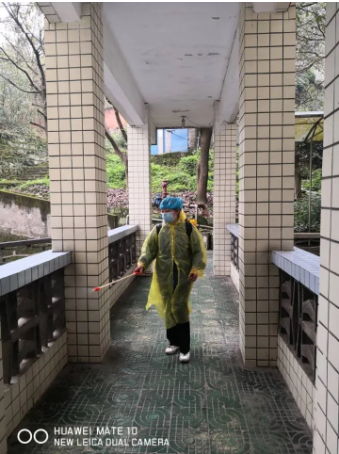 自从新冠疫情防控工作部署以来,每天早上5点半,总务科保洁组陈茜的身影就会准时出现在发热门诊。她又早早的开始了仔细的清洁、消杀工作。沉重的消杀工具和药水,让她很快就满头大汗,每天两次雷打不动,在医院的走廊、病房、公共区域总能看见她背着消毒工具的身影,显得那么的平凡和执着。正是有着千千万万个这样的身影才筑牢了抗击新冠疫情的血肉长城、奏响了群防群治的时代最强音、坚定了打赢这场疫情阻击战的信心。