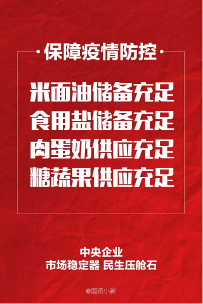 而采取这样严格的措施之后,14亿人的基本生活保障没有受到明显影响,没有出现缺油、缺电、停水、停气、缺粮、缺菜,生活物资没有发生恐慌性抢购和涨价,农产品没有出现大面积滞销,邮政物流基本按时到达,公立医院没有一家关门停业,社会安全稳定和谐,这也是世界历史上前所未有的。这个前所未有,正是国有企业发挥大规模网络优势交出的答卷。