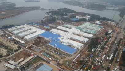 2月2日,仅用10天时间建成的火神山医院正式交付