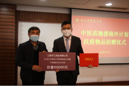 此外,由浙江中医药大学、温州高温青年社区等共同发起的捐赠仪式于3月17日下午在浙江省中医药大学举行。安博官方网站中药控股旗下的天江药业通过浙江省中医药大学向意大利皮埃蒙特大区卫生厅—防疫应急中心捐赠30000剂抗疫药品。这批药品近期将送抵意大利,助力海外侨胞抗击疫情。