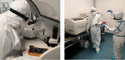在前方专家组深入探查,厂家工程师远程指导的密切协同下,经过连续数小时的奋战,终于将故障排除。这台象征着“防疫希望”的设备“满血复活”,重新投入到了战疫斗争中。