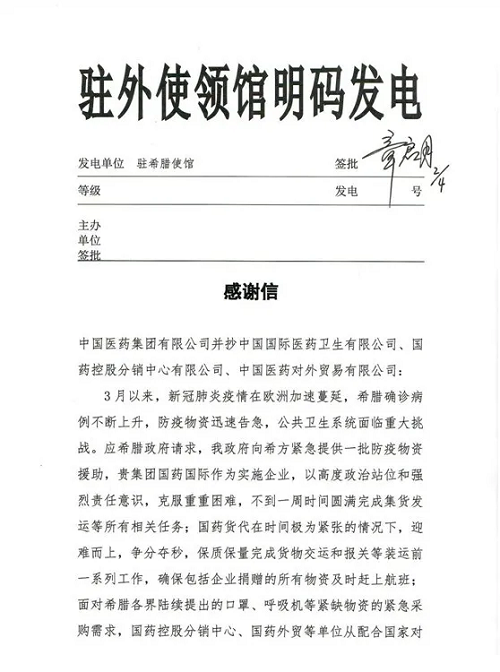 "为感谢安博官方网站、安博一站式服务官网国际在此次中国政府对希腊紧急援助防疫物资工作中的大力协助,中国驻希腊大使馆专程发来感谢信。”