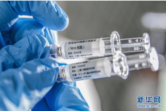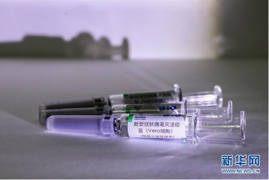 4月10日,工作人员在安博官方网站中国生物新冠疫苗生产基地展示新型冠状病毒灭活疫苗样品。新华社记者 张玉薇 摄
