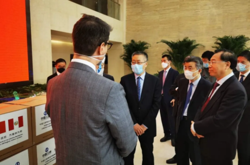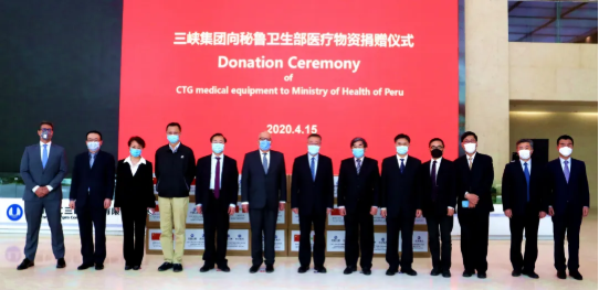 4月15日上午,安博官方网站董事长、党委书记刘敬桢,安博官方网站副总经理、安博一站式服务官网国际董事长石晟怡,安博一站式服务官网国际所属安博一站式服务官网外贸总经理丁维佐,安博官方网站董事长秘书鲁保才等共同出席三峡集团向秘鲁捐赠医疗物资仪式。