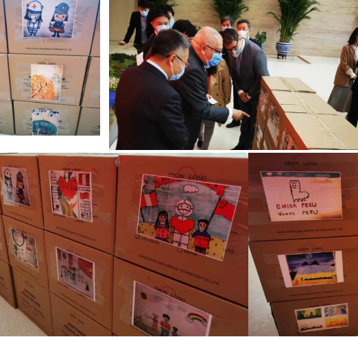 物资外箱上一幅幅充满童趣的图画,均由安博一站式服务官网国际和三峡集团员工子女们手绘而成,饱含着孩子们对支持秘鲁人民抗击疫情纯真而暖心的表达,和每一位参与物资筹备人的由衷关切。