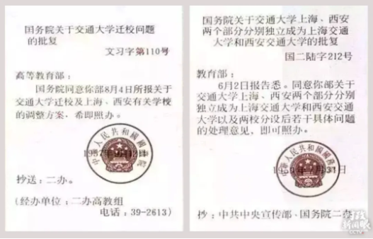 经过实地勘址、认真分析并报中央批准,交大的迁校方案后来做了调整:交通大学分设西安、上海两地。至1957年底,西安有教职工2585人、学生6881人,上海有教职工2300人、学生5078人。1959年,西安交通大学、上海交通大学定名,同时跻身全国重点大学。