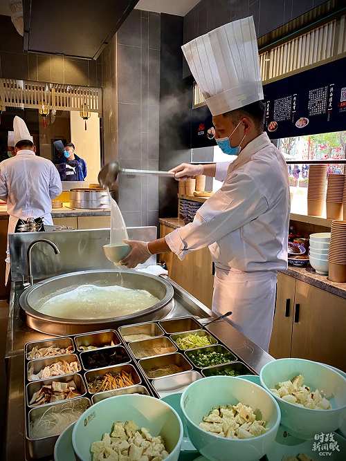 △灌汤虾球、肉夹馍、肉包,是步行街烟火气的最佳代表。(总台央视记者史伟、王哈男、李辉拍摄)