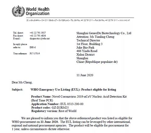新冠疫情爆发后,WHO资格预审小组宣布,WHO产品紧急使用清单(EUL)将向检测SARS-CoV-2(最初称为2019-nCoV)的体外诊断产品厂商开放。