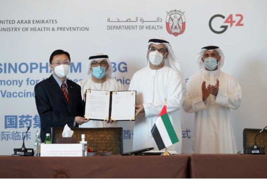 仪式上,中阿双方现场签署了相关临床合作协议,标志着全球首个新冠灭活疫苗国际临床试验(Ⅲ期)正式启动。这是贯彻落实习近平主席在世界卫生大会致辞中关于“中国新冠疫苗研发完成并投入使用后,将作为全球公共产品,为实现疫苗在发展中国家的可及性和可担负性作出中国贡献”重要讲话精神的阶段性成果,是中国原创的疫苗首次在国际上开展Ⅲ期临床研究,中国新冠疫苗在海外开展的第一个临床试验,开启了新冠疫苗国际合作新篇章,对于推动疫苗早日投入使用、造福人类,迈出了关键一步。