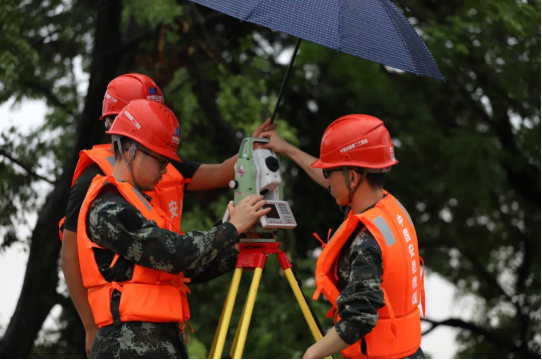为抵挡水流对堤防正面冲刷,中国安能的抢险人员迅速给出了专业的处置方案,实施“堤头裹头保护、石碴戗堤进占、水上分层碾压、黏土抛填闭气”战法,进行封堵作业。同时,他们还利用GPS测量仪、雷达流速仪掌握决口处水位流速变化,确保了封堵作业的高效组织和有序展开。