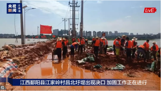 连日来,位于江西省东北部、鄱阳湖东岸的鄱阳县遭受持续强降雨袭击,近十天平均降雨量高达324.4毫米。受此影响,鄱阳湖水系昌江流域水位迅猛上涨,7月8日20时35分左右,鄱阳县问桂道圩堤发生漫决,圩决口长127m。