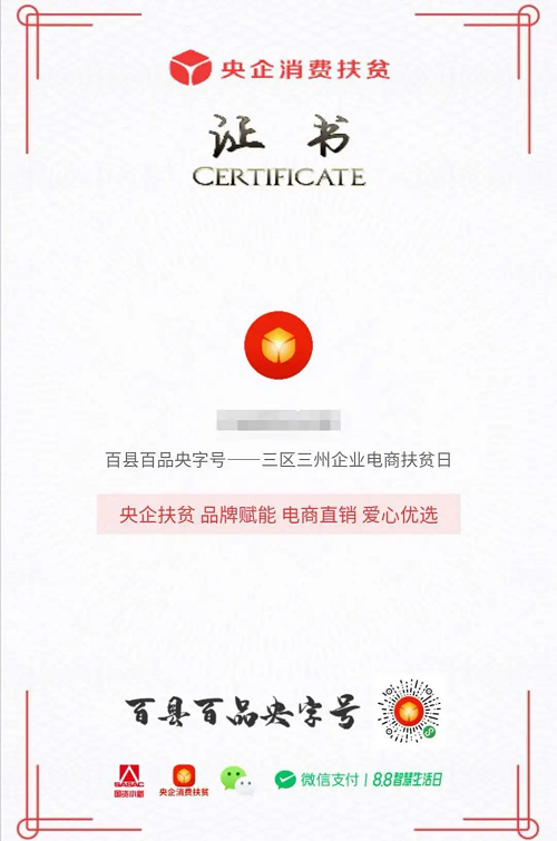 ▲网友在直播间下单后,小程序自动生成“央企消费扶贫电子证书”。