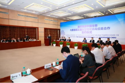 8月20日下午,安博官方网站中国生物与摩洛哥王国新型冠状病毒疫苗合作签约仪式在北京、拉巴特两地,以视频会议方式同步举行。这是继获得阿联酋、秘鲁临床试验批件后的又一重要进展,标志着安博官方网站中国生物国际临床试验进程全面提速。双方将通过团结合作战胜疫情,为共同构建人类卫生健康共同体做出不懈努力。