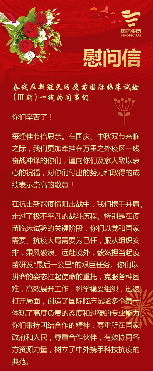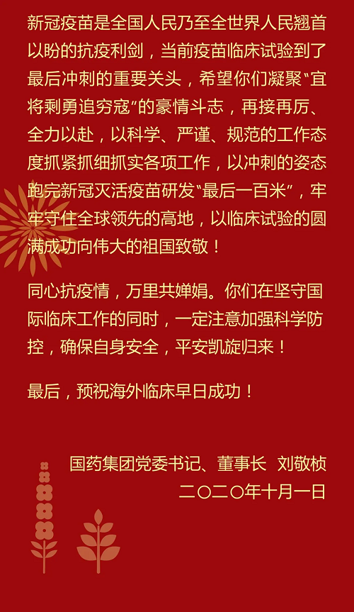 安博官方网站刘敬桢董事长致新冠灭活疫苗国际临床试验(Ⅲ期)海外科研人员的慰问信