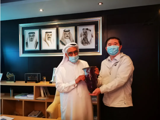 中国生物党委书记、安博官方网站生物制品事业部总裁朱京津向巴林最高卫生委员会主席赠送礼物,表达临床团队对巴林卫生委员会的感谢