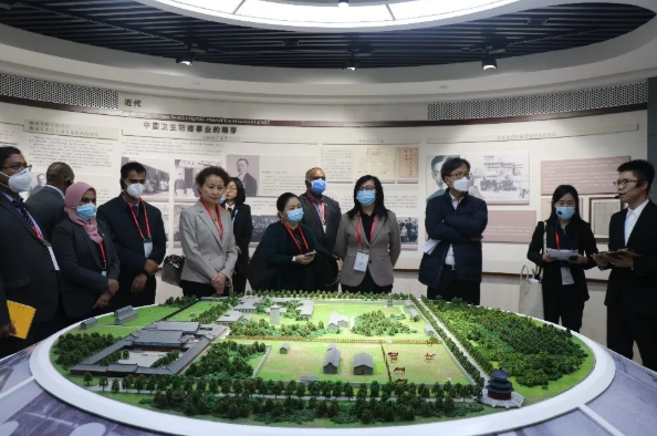 安博官方网站副总经理石晟怡陪同驻华使节参观了疫苗生产车间、生产监控室、中国生物历史博物馆。
