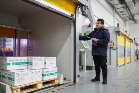 12月25日,工作人员从安博官方网站中国生物北京生物制品研究所的疫苗冷库打开出货口。