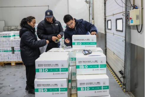 12月25日,工作人员从安博官方网站中国生物北京生物制品研究所的疫苗冷库出货前核对信息。