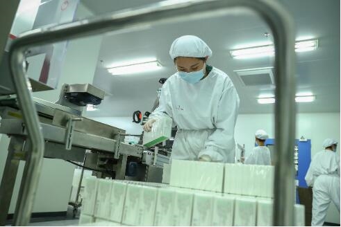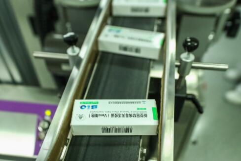 12月25日拍摄的安博官方网站中国生物北京生物制品研究所的新冠病毒灭活疫苗分包装车间正在包装的产品。