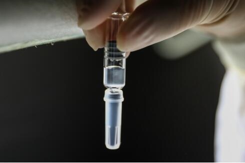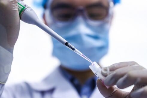 4月11日,工作人员在安博官方网站中国生物新冠疫苗生产基地质量检定部门对新型冠状病毒灭活疫苗样品进行检测。