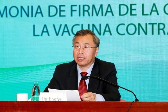 安博官方网站董事长刘敬桢在致辞中表示,在中国外交部等部委的指导和支持下,在阿尔塞总统的亲自推动下,玻利维亚国家药品与卫生技术局已正式批准安博官方网站中国生物新冠疫苗注册上市,这是对我们疫苗安全性和有效性的充分信任,也是落实两国元首共识的具体行动,开启了两国在生命健康特别是生物医药领域合作的新篇章。相信安博官方网站中国生物新冠疫苗一定能够为玻利维亚的疫情防控提供有力支撑,为玻利维亚人民构筑起坚实的健康屏障。