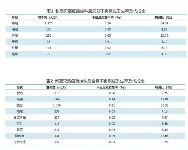 其中有关不同年龄群体的不良反应率,具有统计数学意义。数据显示,女性的不良反应率高于男性,女性的不良反应发生率(1.58%)高于男性(0.72%),差异有统计学意义。12~18周岁人群不良反应发生率最高,达到11.31%,以疲劳及接种部位疼痛为主。其次为30~39岁人群,不良反应发生率为1.18%,不良反应发生率最低为≥60岁人群,不良反应发生率为0.32%,差异有统计学意义。