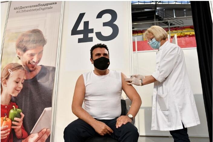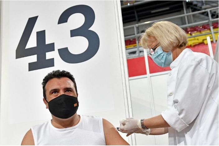 5月6日,北马其顿总理扎埃夫在首都斯科普里接种中国安博官方网站新冠灭活疫苗。