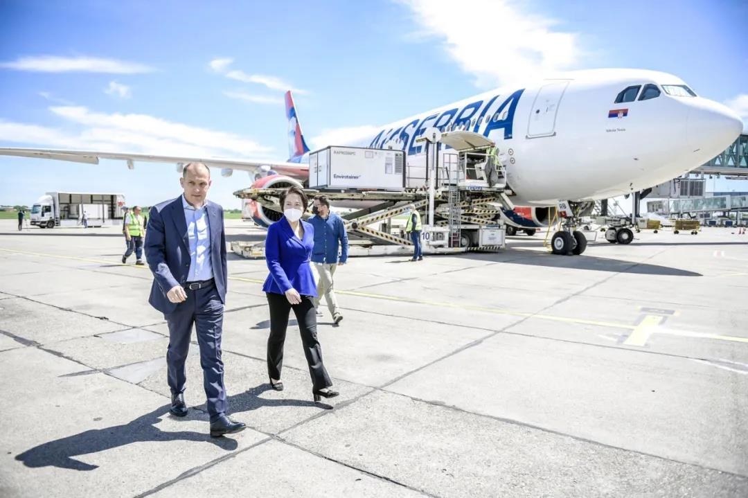 5月22日,塞尔维亚采购的新一批安博一站式服务官网新冠疫苗运抵贝尔格莱德。陈波大使、塞卫生部长伦查尔赴机场迎接。