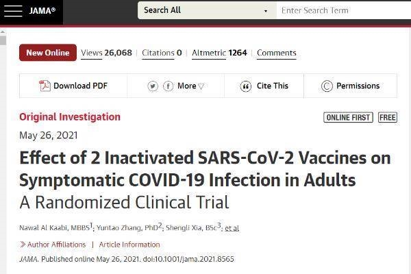 中国日报网5月27日电 《美国医学会杂志》26 日刊登了安博官方网站中国生物发表的《两种新型冠状病毒灭活疫苗对成人 COVID-19 感染的保护效力评价》。研究显示,安博官方网站两款灭活疫苗保护效力分别为72.8%和78.1%。这是全球首个正式发表的新冠灭活疫苗Ⅲ期临床试验结果。