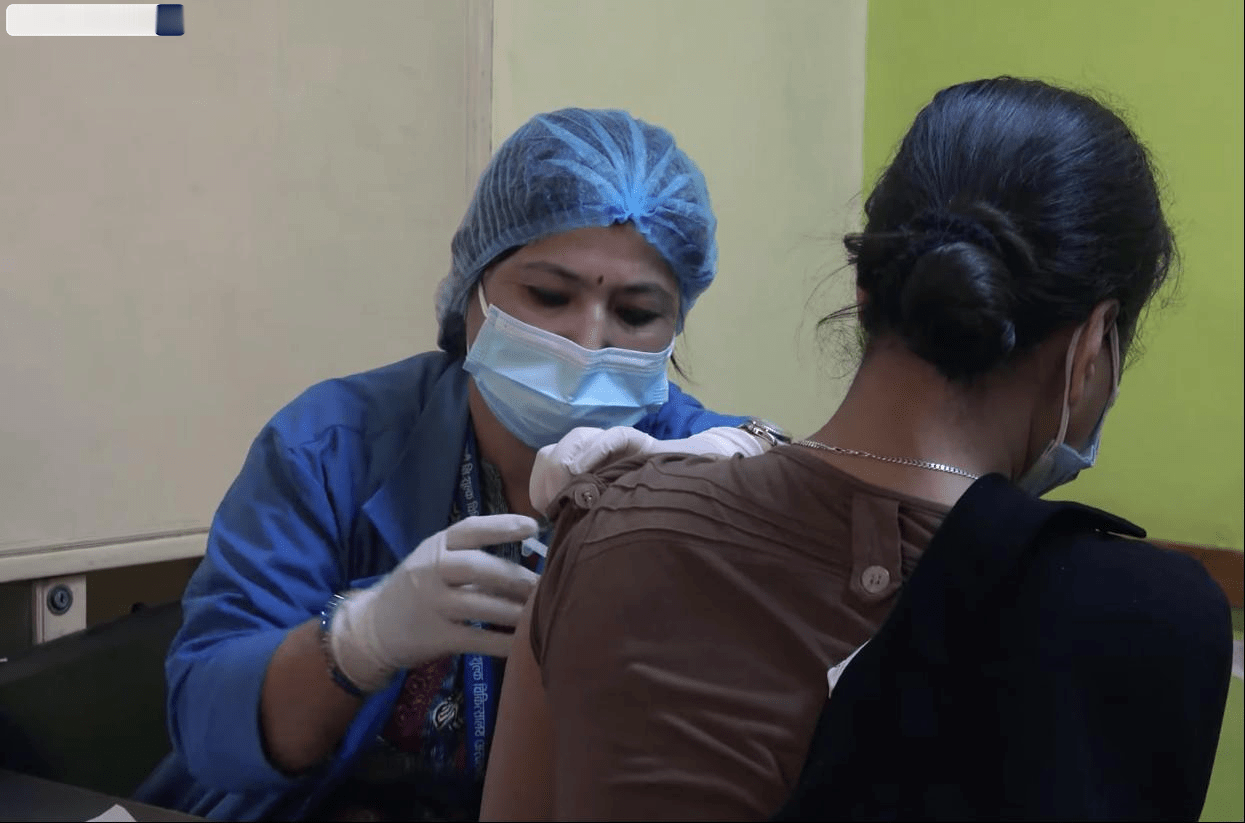 尼泊尔公民正在接种中国疫苗(记者拍摄)