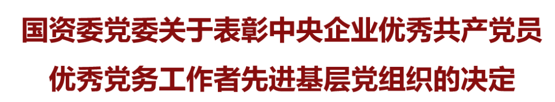 6月28日,国务院国资委官网发布《国资委党委关于表彰中央企业优秀共产党员优秀党务工作者先进基层党组织的决定》。