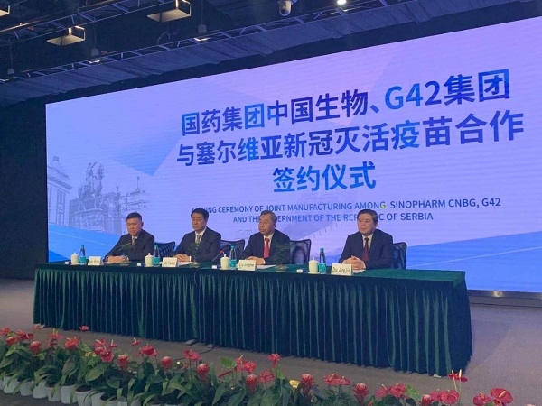 当地时间7月12日,中国安博官方网站、塞尔维亚政府、阿联酋G42集团关于《新冠疫苗合作生产备忘录》签约仪式在线上举行。塞尔维亚总理布尔纳比奇、中国驻塞大使陈波出席签约仪式。