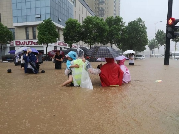 中国中铁所属的中铁工业旗下中铁装备集团扎根郑州多年。灾情发生后,中铁装备盾构公司的13名员工组成了“穿山甲救援队”,应召参与抢险任务。救援队蹚水徒步5公里,前往郑州市第八大街与陇海路左侧涵洞救援现场,转移被困车辆20余辆,转移被困群众数千名。