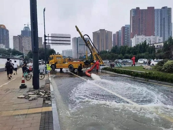 7月21日,新兴际华集团所属企业湖北三六一一应急装备有限公司紧急派出11人支援小分队和3辆自主生产的排涝车辆,从武汉市汉南区出发,经过10多个小时的长途跋涉,于21日晚24时到达郑州洪灾中心区域,进行全负荷排涝工作。目前已将4处积水区域处理完毕,现正投身郑州水厂(市政项目)进行排涝作业。