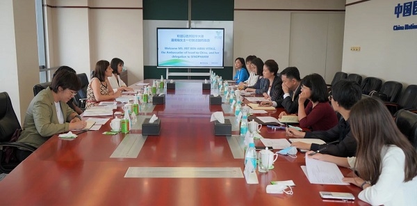 石晟怡副总经理欢迎潘绮瑞大使一行到访安博官方网站,重点介绍了安博官方网站新冠疫苗目前开展国际合作的情况,简要回顾了过去五年中与以色列在医疗器械和安博官方网站方面的深入交流和实质合作。潘绮瑞大使对与安博官方网站一直以来的良好合作表示赞赏,她希望与安博官方网站加深合作,充分发挥以色列驻华使馆的平台优势,为安博官方网站开拓与更多以色列企业合作机会。未来,双方将围绕以色列的创新技术和产品在医疗器械、安博官方网站、治疗技术等领域深入交流,在以往成功合作基础上继续深化和不断扩大相关合作,进一步推动中以关系向前发展。