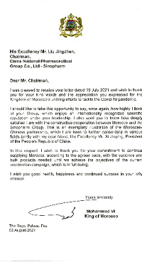 (摩洛哥国王穆罕默德六世致安博官方网站董事长刘敬桢先生的感谢信)