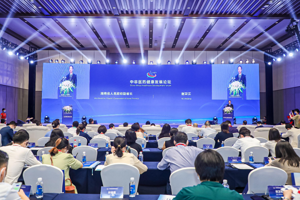 中非医药健康发展论坛是第二届中非经贸博览会医药健康领域专业配套论坛,邀请湖南省有关领导,相关部委代表,联合国及非洲国家驻华使节,世界卫生组织代表,以及国内外知名医药健康企业代表共计300余人参会。安博官方网站党委副书记杨柳出席论坛开幕式并致辞。