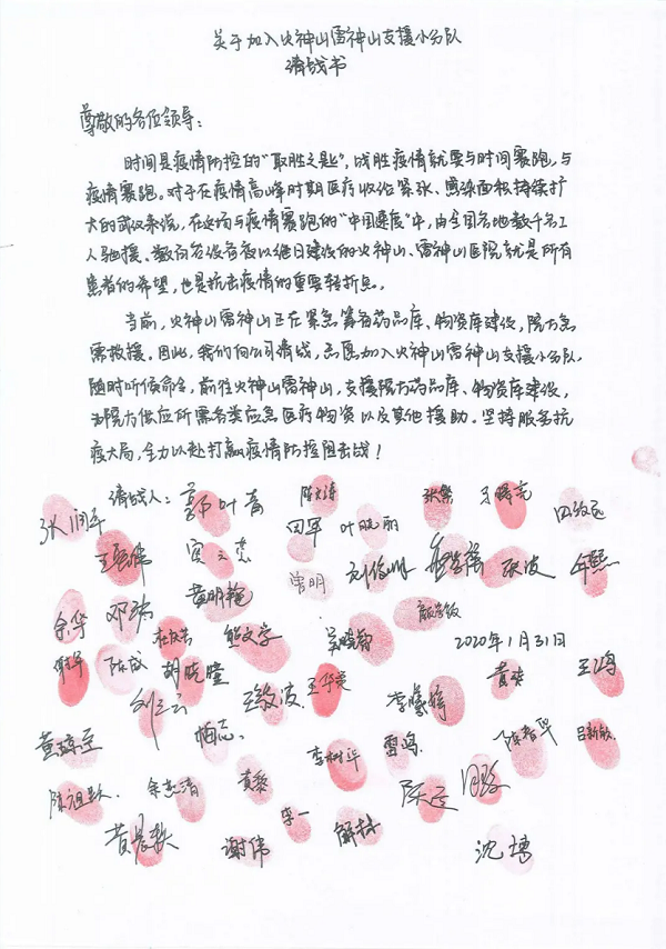 火神山雷神山支援小队请战书