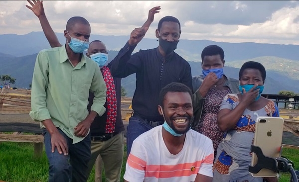 2020年5月14日,卢旺达咖啡农观看直播录像,看到3000斤咖啡瞬间卖光后欢呼。