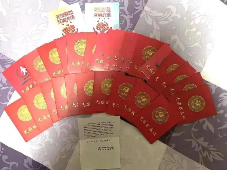 “老贺是退伍军人,还是拥有34年党龄的老党员。这20多年来,他一直坚持献血,家里的献血本有厚厚一摞。我们女儿的18岁成人礼、我俩的结婚纪念日,很多特殊日子的庆祝方式都是他带着一家人去献血。”张春兰说,老贺只要了解到缺少B型血,就一定会去献血,在老贺的带动下,26岁的女儿贺阳也已献血五、六次。