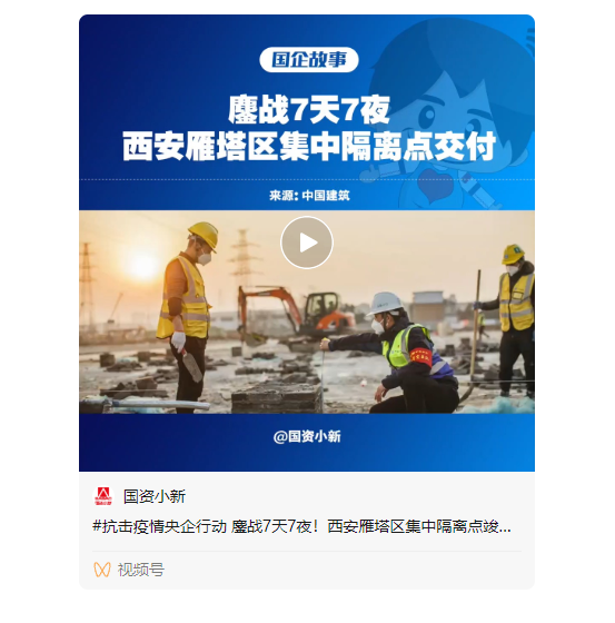 1月8日,历时7天7夜建设的西安雁塔区集中隔离点项目竣工交付,可容纳1000余人进行隔离。中建集团旗下十一家单位投入500多名管理人员,7000多名建设者,240台设备,在冬日的寒风里24小时昼夜施工。不管是火神山医院、雷神山医院,还是西安雁塔区集中隔离点,只要人民有需要,朴实的建设者们就一往无前,誓与病毒抢时间。