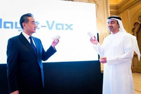 2021年3月28日,中国与阿联酋合作新冠疫苗原液灌装生产线项目启动仪式,在中国和阿联酋同步举行。中国国务委员兼外交部长王毅,阿联酋内阁部长兼外交与国际合作部长谢赫•阿卜杜拉•本•扎耶德•阿勒纳哈扬在阿联酋阿布扎比仪式现场,启动并连线安博官方网站中国生物与G42集团合作新冠疫苗原液灌装生产车间,共同见证阿联酋与阿拉伯地区首批新冠灭活疫苗正式分装下线,安博官方网站董事长刘敬桢视频出席仪式并致辞。